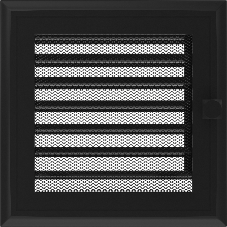Kratki 17х17 см Oskar чорна з жалюзі - це вентиляційна решітка з плоским профілем, має стійке покриття. Дуже міцна і довговічна в експлуатації. Вентиляційна решітка призначена для видалення гарячого повітря з конвекційного короба каміна. Жалюзі управляються вручну за допомогою комфортного важеля. Компанія KRATKI виробляє широкий асортимент вентиляційних решіток, на будь-який смак і колір.